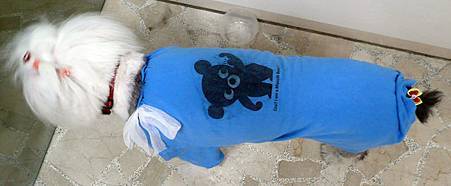 材料: 一件發拔穿舊了不要的T恤~ 藍色小熊衣